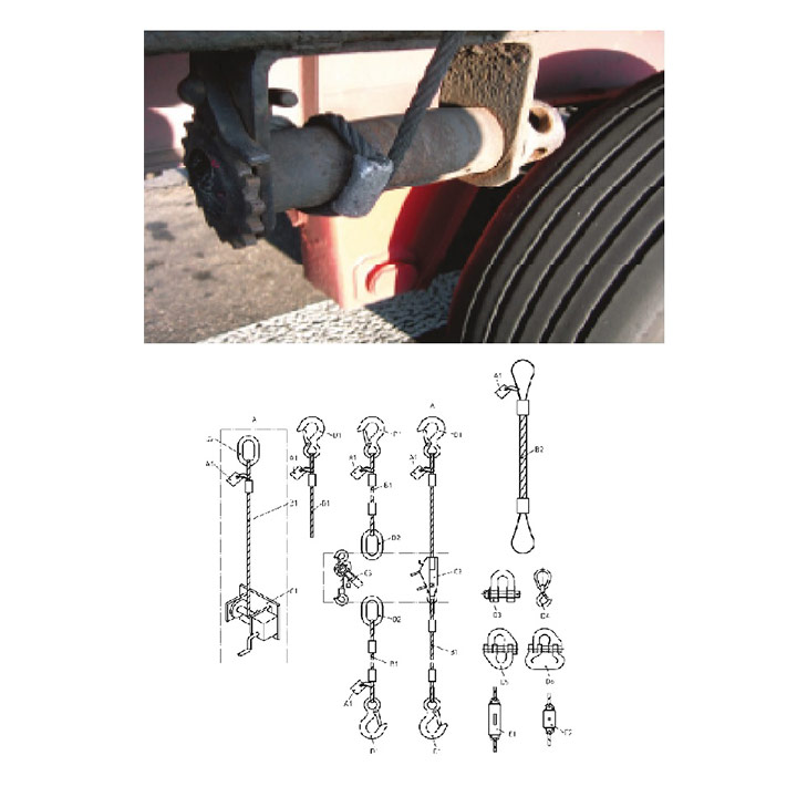 La Norma EN 12195-1 contempla los diferentes dispositivos para la sujeción de la carga en vehículos de carretera y concretamente la Norma EN 12195-4 hace referencia a los sistemas de trincaje con cable de acero y que todos nuestros productos de esta sección cumplen.